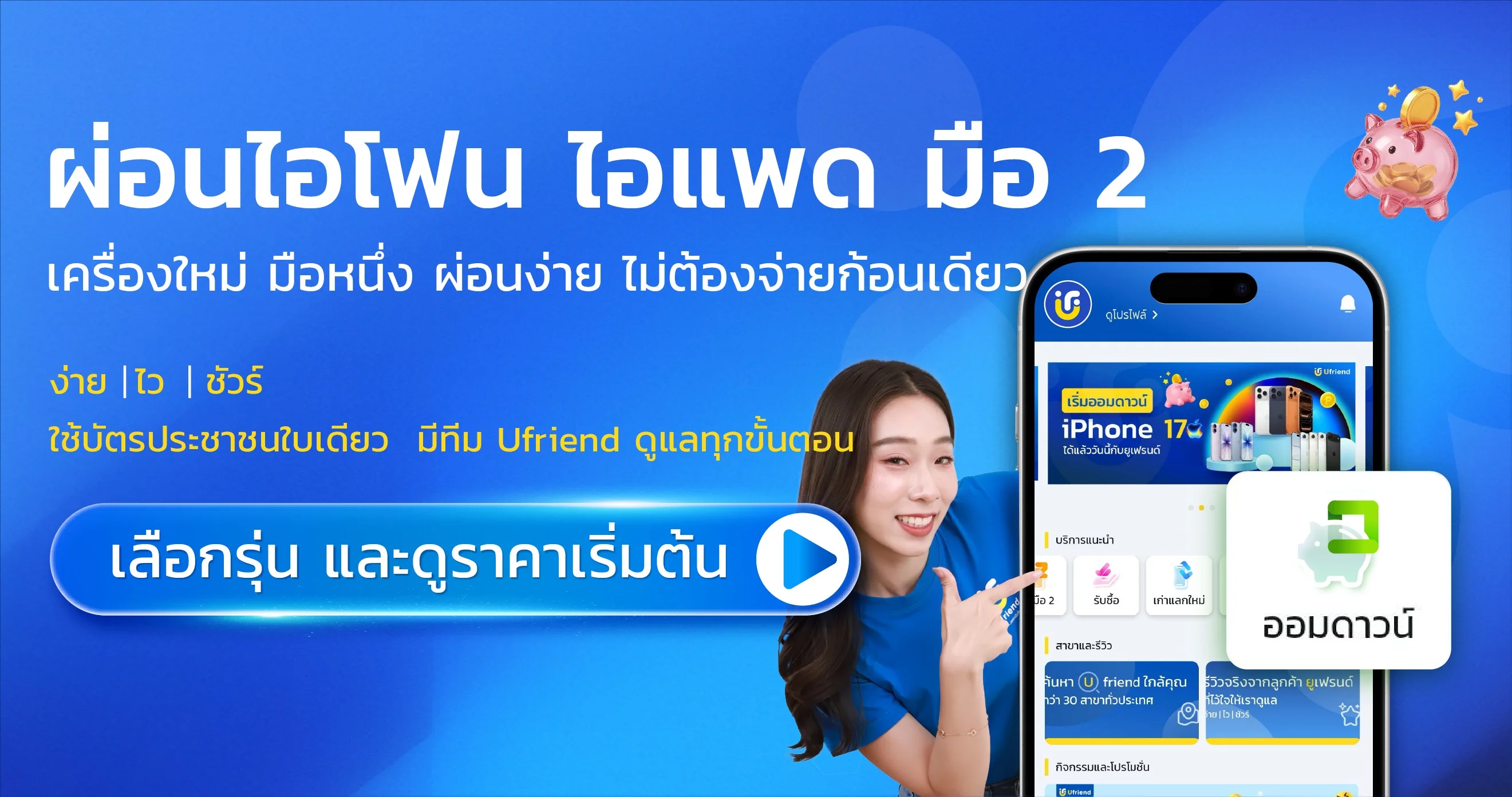 ขั้นต่ำ 100 บาท • รับเครื่องที่สาขา Ufriend ใกล้บ้าน